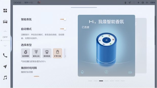 在寒冷冬日里,随时能喝上温暖的热水,呼吸间车上隐隐渗透出旷野的氛围香气,在车机上一键进入“咖啡生活”,体验轻松惬意的车上时光。