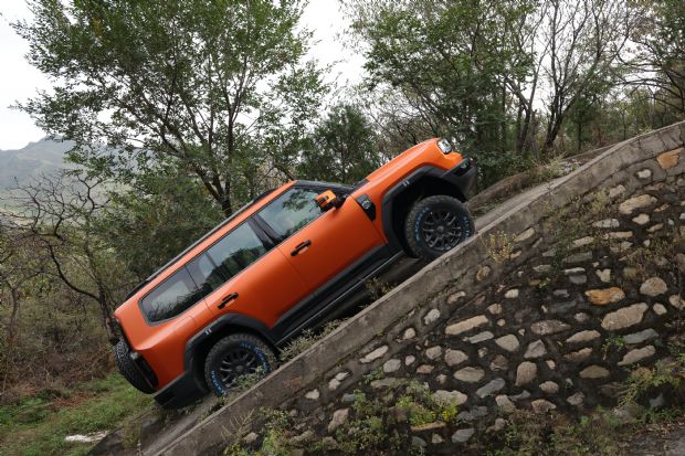 涉水环节更显硬核。当G700驶入600mm深的模拟河道,IP68级防水的发动机、电池与电机全程稳定输出,行业首创制动盘清洁功能自动激活,出水后制动力无丝毫衰减。从容的涉水表现,源自G700防水技术的突破性进阶,其首搭的2.0TD混动专用发动机通过五大防水技术升级,达到同级别第一的IP68级防水,在水中浸泡2小时后仍然可以正常启动,是国标要求浸水30分钟时长的四倍;整车涉水能力在空悬状态下达到970mm,达到路虎揽胜(涉水深度900mm)、路虎卫士OCTA(涉水深度1000mm)等百万豪车水平。