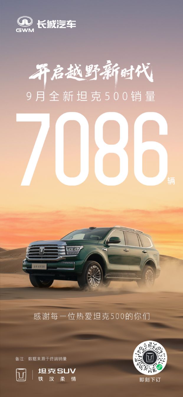 单月销量7086辆!全新坦克500重塑豪华越野格局