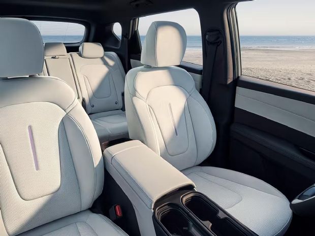 内饰座舱主打科技与舒适双重体验。27英寸4K双联屏(中控屏+副驾娱乐屏)搭配高通8295芯片,操作流畅度与功能丰富度拉满;怀挡设计释放出充裕的中央岛台空间,内置手机无线充电功能实用性十足。