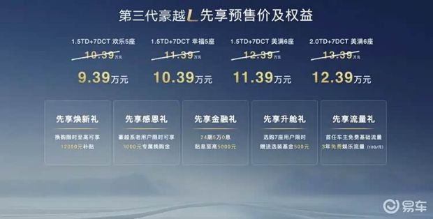 先享预售价9.39万起 吉利第三代豪越L开启预售