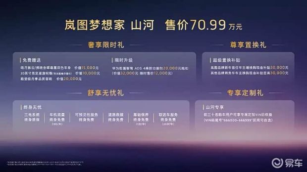 11月21日,“新时代旗舰四座MPV”岚图梦想家山河正式上市,新车售价70.99万元,用户下订可享山河专属四重礼。岚图梦想家山河不仅是唯一搭载华为乾崑智驾ADS4和鸿蒙座舱5的四座MPV,拥有最顶尖的主动安全能力,也是全球首搭800V智能超混的四座MPV,融合62.5度大容量电池的从容续航,与5C超充技术的补能效率,轻松覆盖商务精英日行千里的全场景出行。