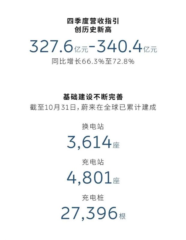 三季度营收217.9亿元,同比增长16.7%,环比增长14.7%,创历史新高。三季度综合毛利率13.9%,创近三年来新高,产品和服务盈利能力显著增强。三季度整车毛利率14.7%,创近三年新高。三季度现金储备367亿元,环比大幅增长近百亿,实现正向经营性现金流和自由现金流。四季度交付指引120,000台至125,000台,同比增长65.1%至72.0%,创历史新高。营收指引327.6亿元至340.4亿元,同比增长66.3%至72.8%,创历史新高。