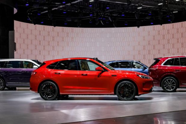 问界新M5 Ultra在广州车展上最引人注目的,莫过于其全新“跃影红”车色。该配色灵感源自阿勒泰极光掠影,通过特殊工艺赋予漆面动态金属质感,在光影流转间呈现出高级而富有张力的视觉效果。配合黑曜运动套装,包括熏黑轮毂、车标及窗框饰条,整车在动感之余不失沉稳气质,契合当代用户对个性与安全并重的审美需求。