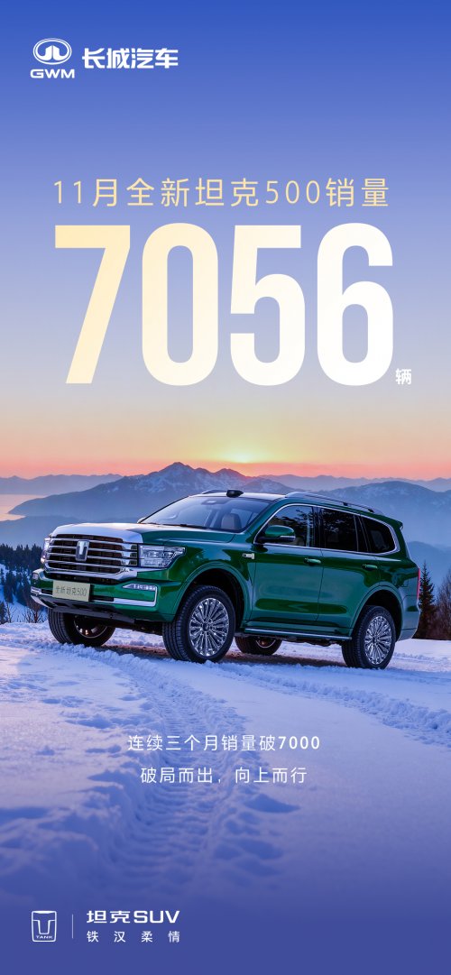 在30万元以上越野SUV这个曾由外资品牌主导的细分市场,一个来自中国的名字正在书写新的传奇。全新坦克500在11月实现销量7056辆,连续三个月销量突破7000辆。这一里程碑式的成绩,不仅标志着全新坦克500已稳固占据该细分市场的领导地位,更向整个行业揭示了一个颠扑不破的真理——在当前汽车消费市场,唯有真正实现“全场景全能”的产品,才能赢得最广泛用户的选择。