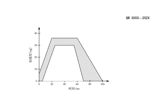 5.2.4 在图4规定的滑车加速度波形的 30 ms ± 5 ms 时注入模拟触发信号,在 100 ms ± 5 ms 时,断开车辆的低压辅助系统供电的蓄电池。若车辆配备多个且布置在不同区域(如发动机舱、乘员舱、行李舱等不同区域)的给门锁系统供电的蓄电池,则断开其中一个。