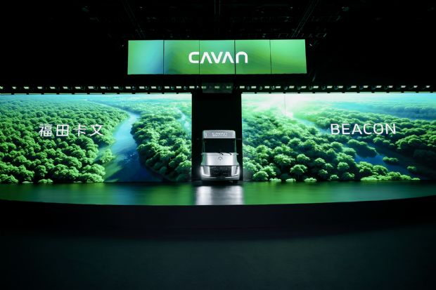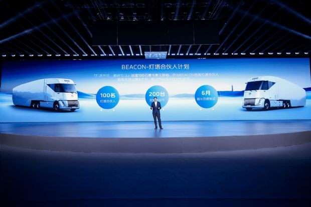 2025年12月18日,福田卡文重卡BEACON正式发布量产版,携纯电、气氢、液氢三款量产产品与公众见面,其中包含国内首台面向量产化的液氢重卡。