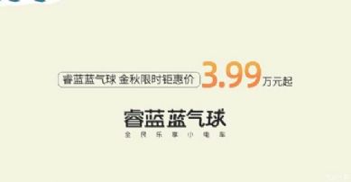 限时3.99万起!睿蓝蓝气球10月购车权益…